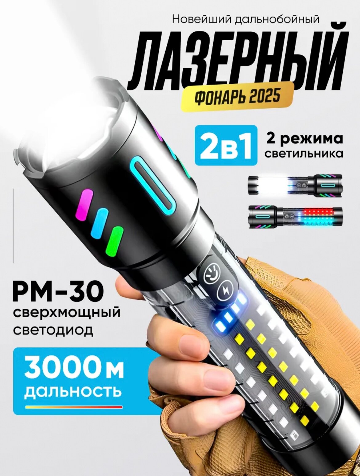Отзывы на Фонарь ручной аккумуляторный, 12000 лм, дальность 3000 м, IP68