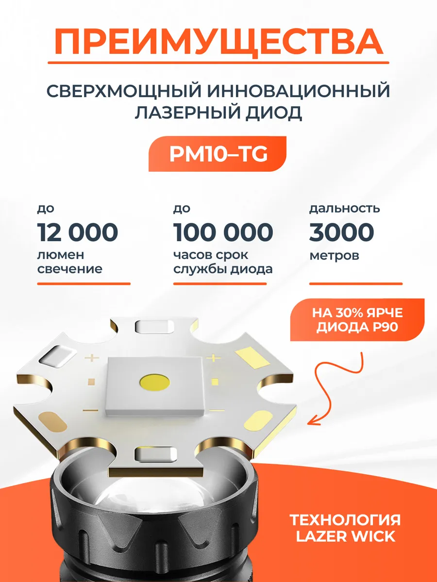 10 цен на Фонарь, ручной, с лазерным zoom, светодиоды, встроенный аккумулятор