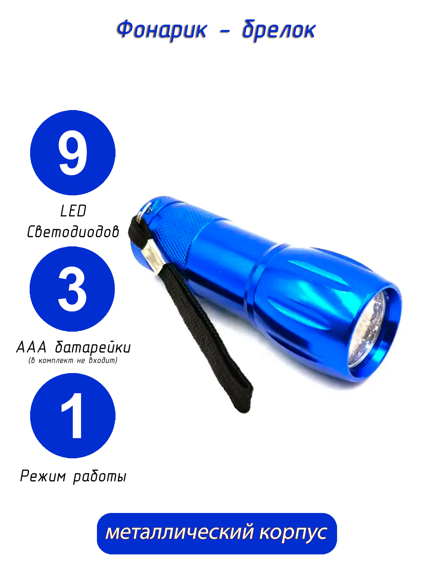 10 цен на Портативный фонарик на батарейках, 3 AAA, 9 Вт, 9 LED светодиодный, 90 lm, синий