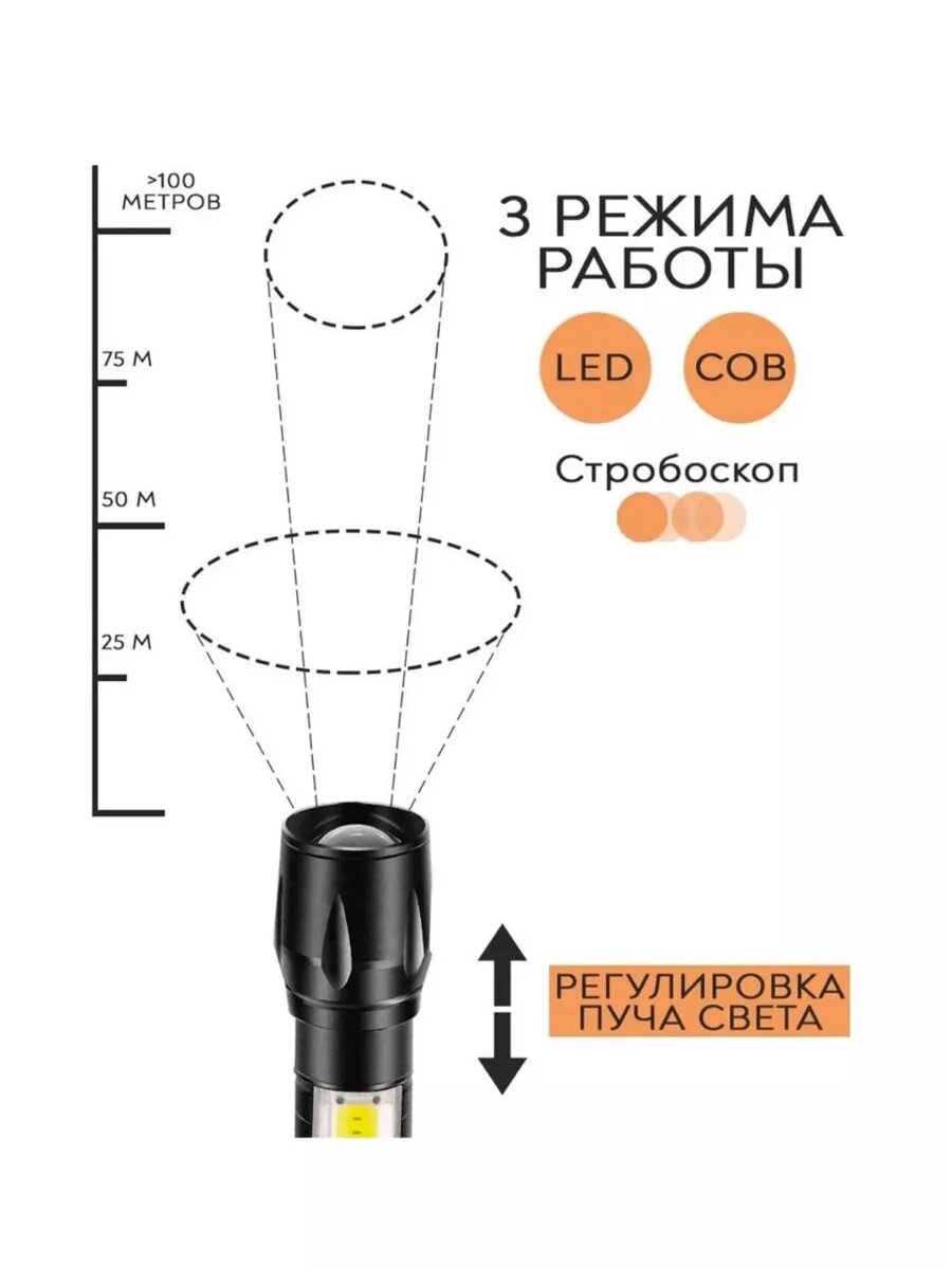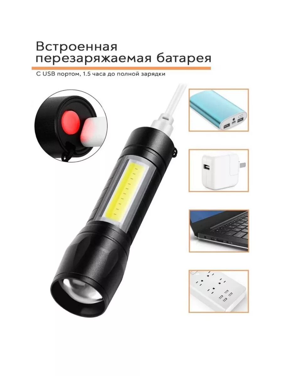 Фонарик карманный светодиодный LED со светильником информация: