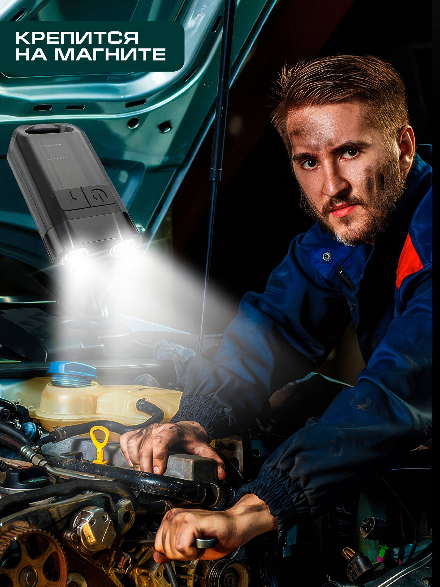 Фонарик ручной аккумуляторный светодиодный/фонарь переносной для ремонта автомобиля/ручной прожектор с магнитом