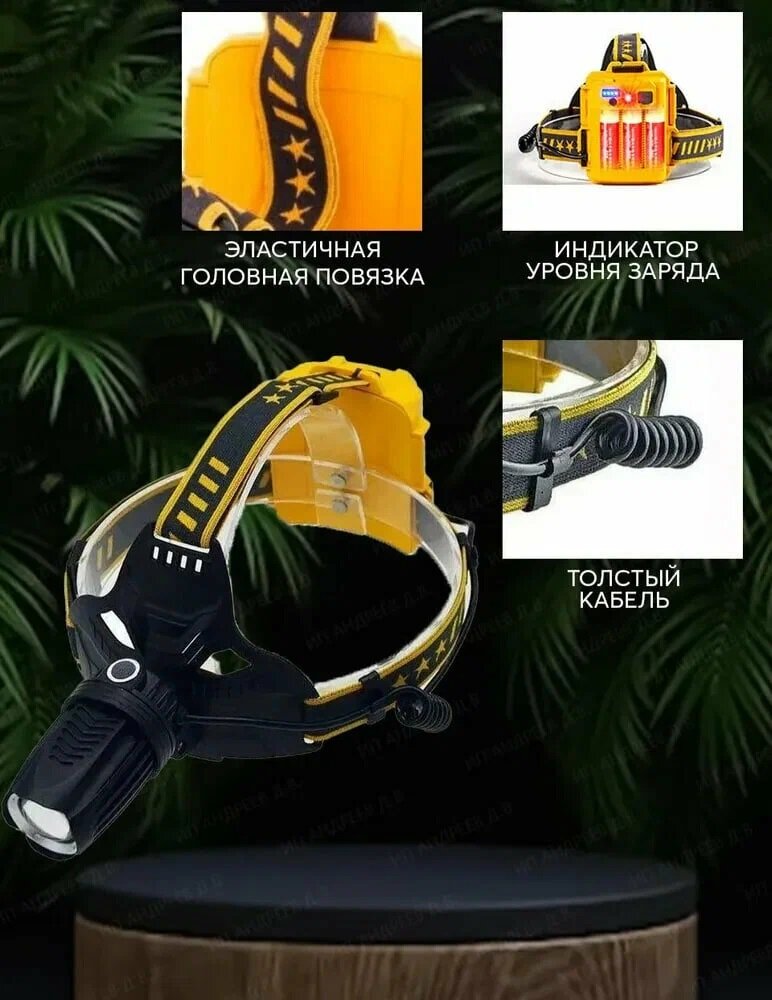 Аккумуляторный налобный фонарь 643. P90 Сверхмощная линза 4 режима 200Вт Для охоты, рыбалки, прогулки, работы информация: