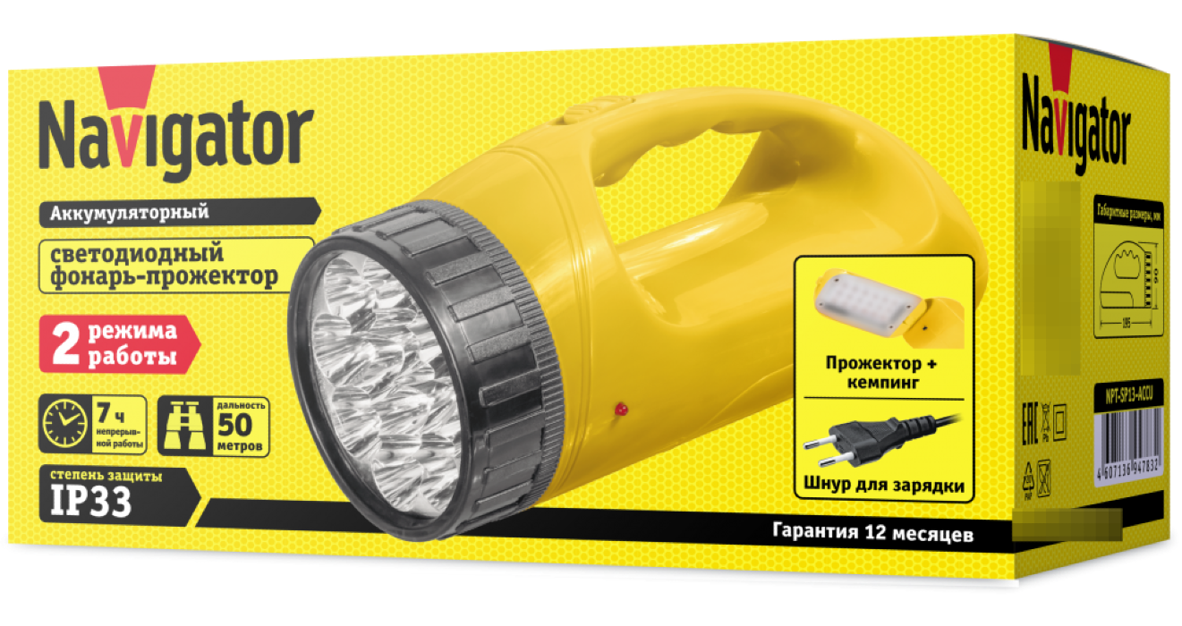 Отзывы на Фонарь ручной Navigator / Навигатор NPT-SP13-ACCU на аккумуляторе 4В 1.1Ач, IP33 1.5Вт, 94783 / светодиодный