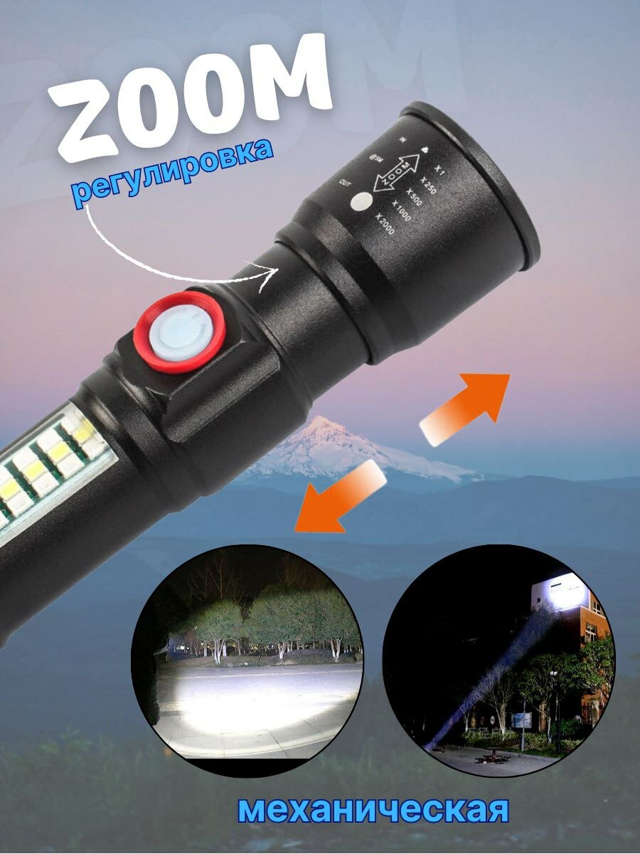 Фонарь ручной спортивный USB с аккумулятором , фонарь прожектор с боковой COB панелью и аварийным режимом информация: