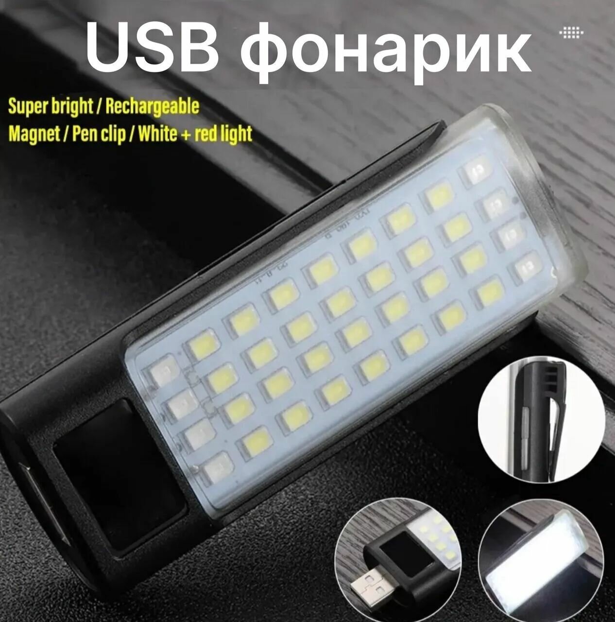 Фонарик ручной аккумуляторный светодиодный/фонарь переносной для ремонта автомобиля/ручной прожектор с магнитом