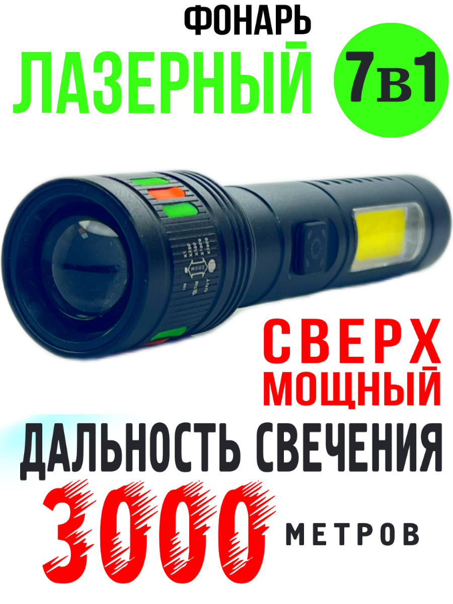 Лазерный аккумуляторный фонарик 3000 м для спорта, туризма, охоты и рыбалки нового поколения 7в1 информация: