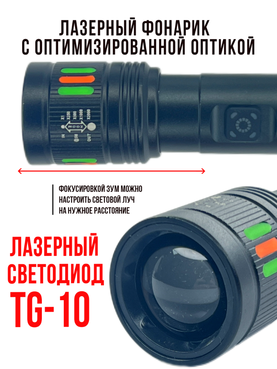 10 цен на Лазерный аккумуляторный фонарик 3000 м для спорта, туризма, охоты и рыбалки нового поколения 7в1