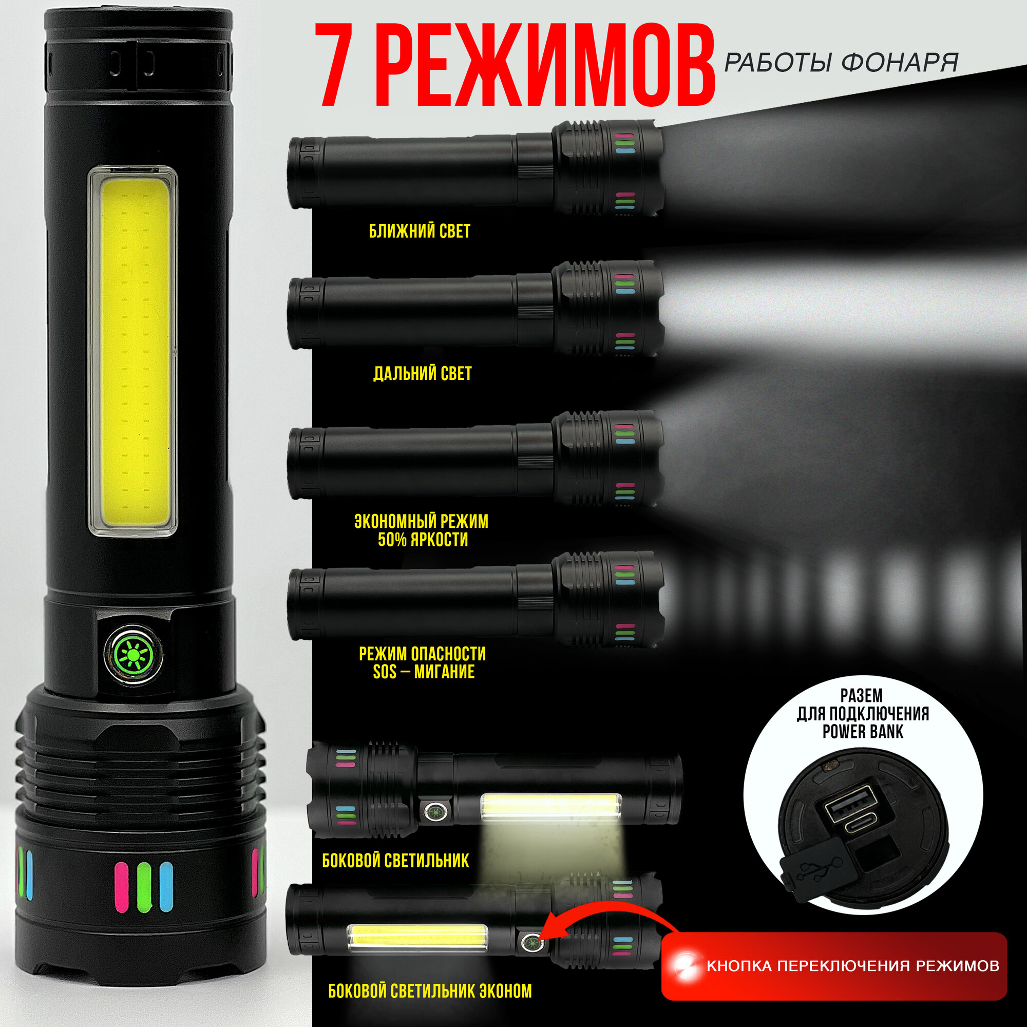 Царь фонарь аккумуляторный 50000 Лм - 5 км дальность, 12 часов работы, лазерный светодиод последнего поколения 7в1 информация: