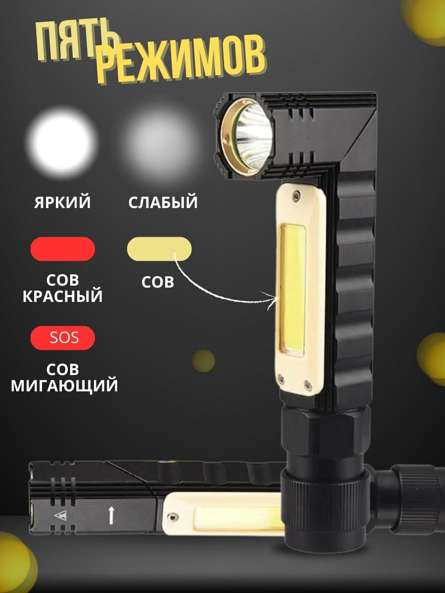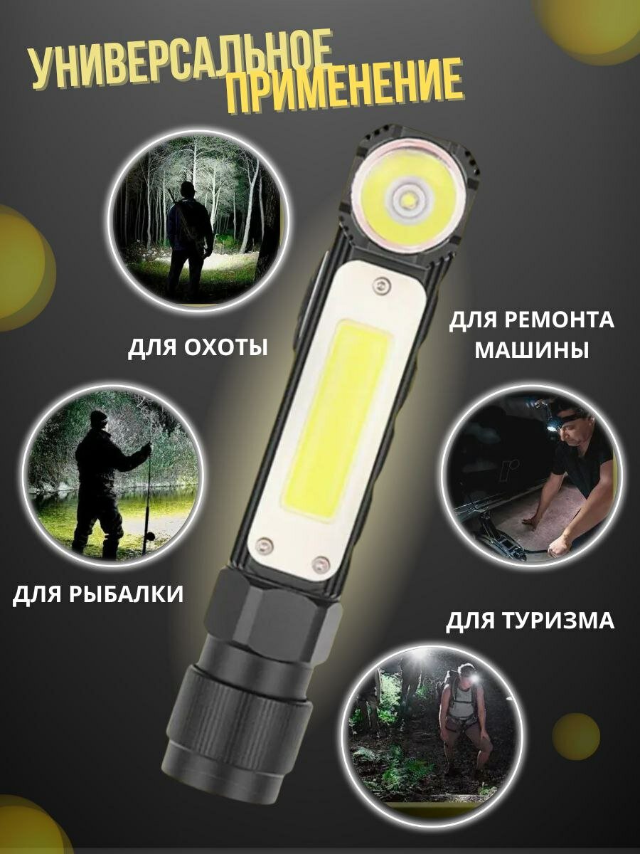 Фонарь ручной светодиодный с аккумулятором , многофункциональный фонарь прожектор с мощным магнитом Led+Cob pro на USB информация: