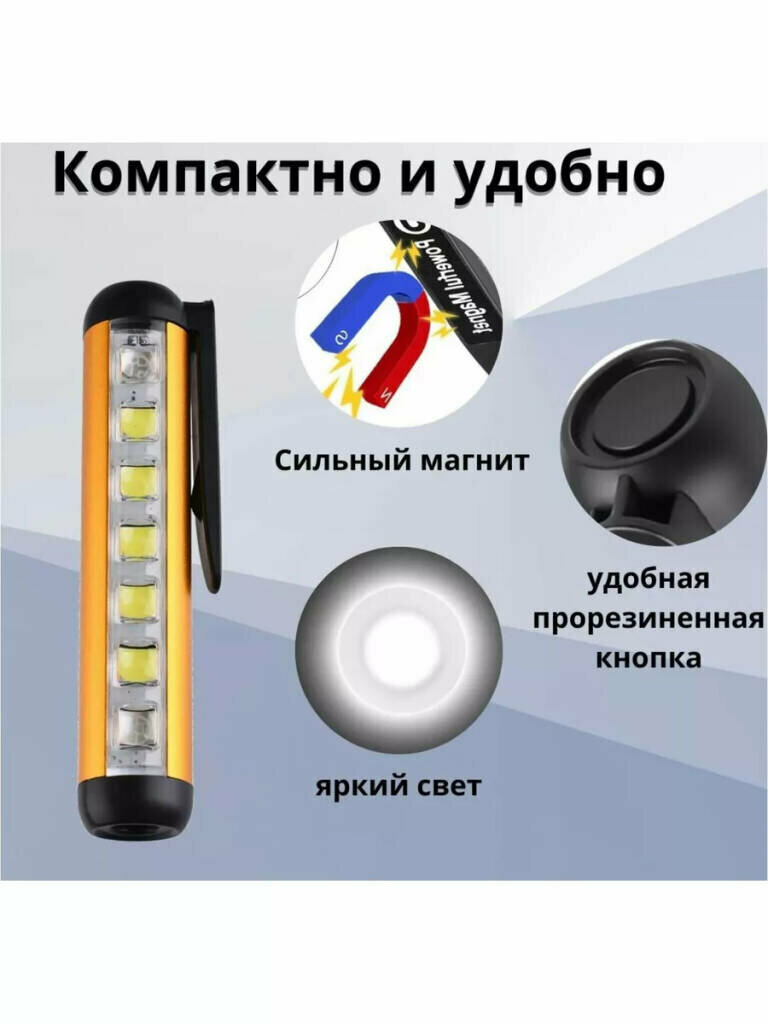 10 цен на Мощный карманный портативный фонарь. С зарядкой Tape-C USB, магнитом и клипсой, серебристый от Shark-Shop