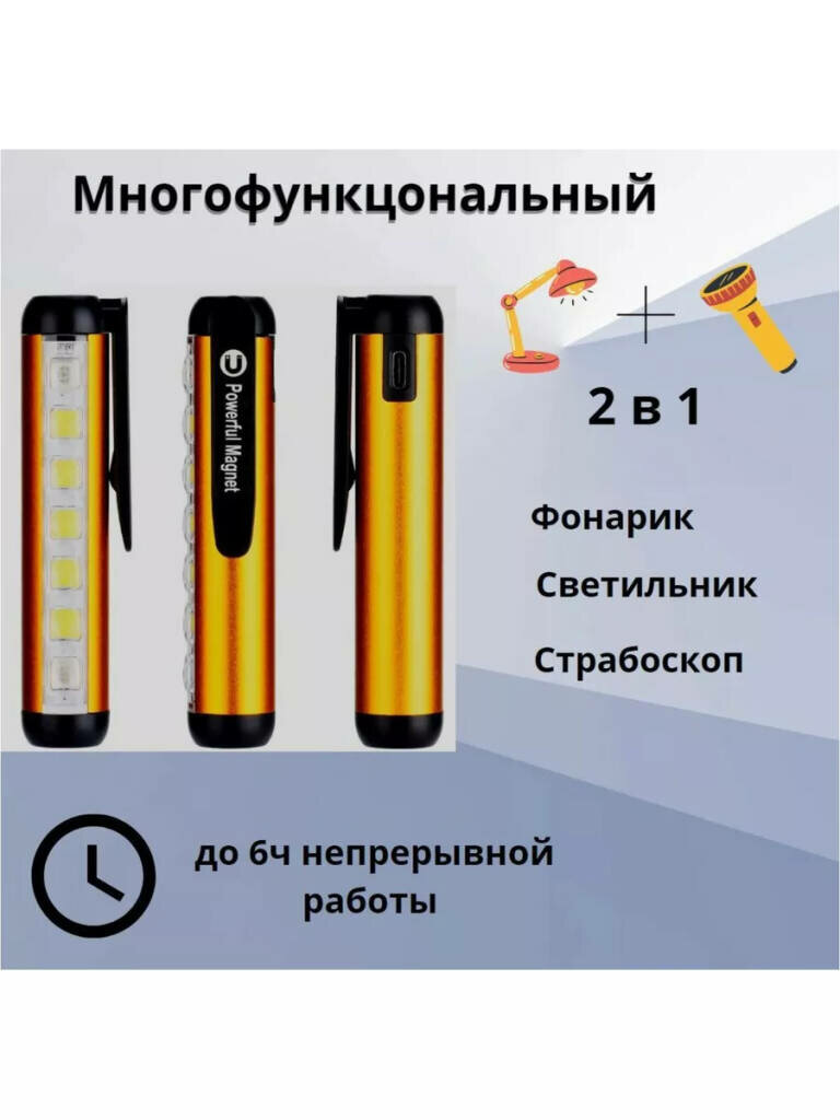 Отзывы на Мощный карманный портативный фонарь. С зарядкой Tape-C USB, магнитом и клипсой, серебристый от Shark-Shop