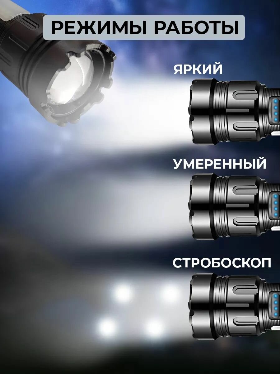 Мощный светодиодный фонарь на аккумуляторе, из металла, с фокусировкой луча, Annsna AS-108