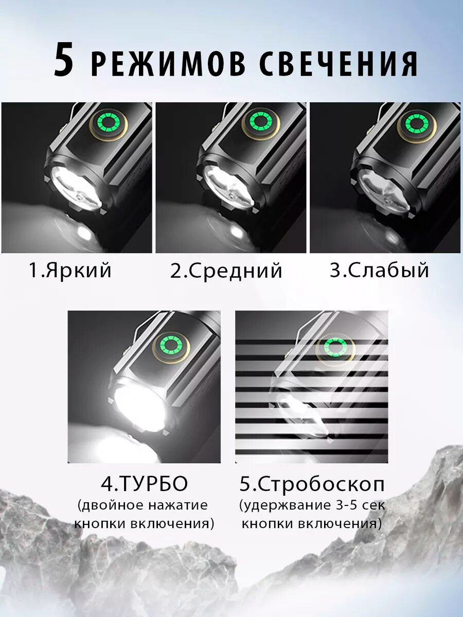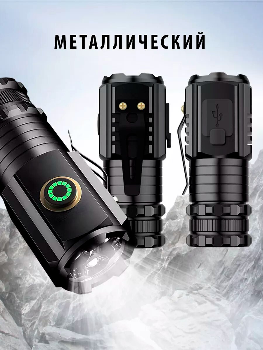 10 цен на Фонарик светодиодный аккумуляторный металлический мини