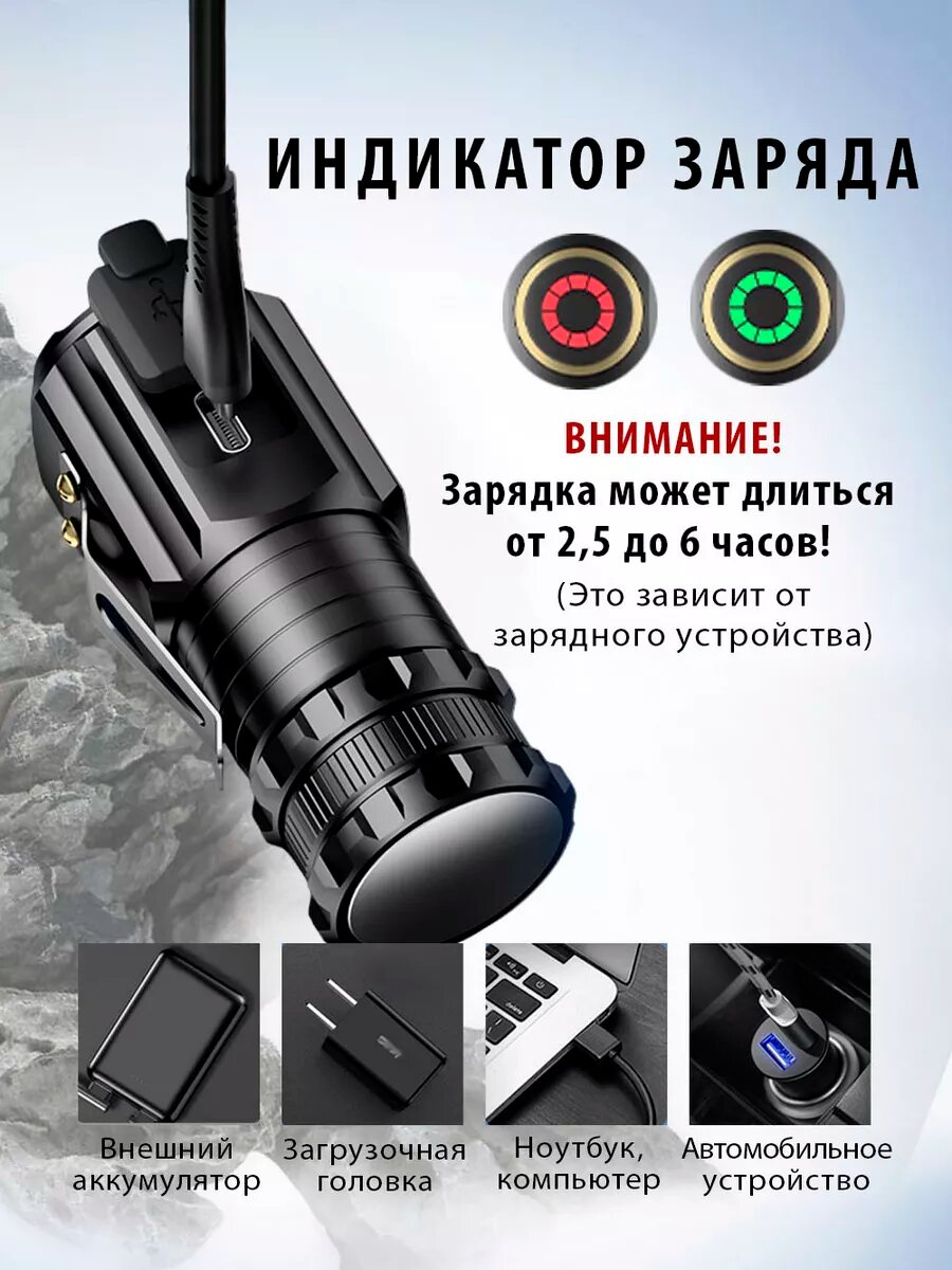Фонарик светодиодный аккумуляторный металлический мини информация:
