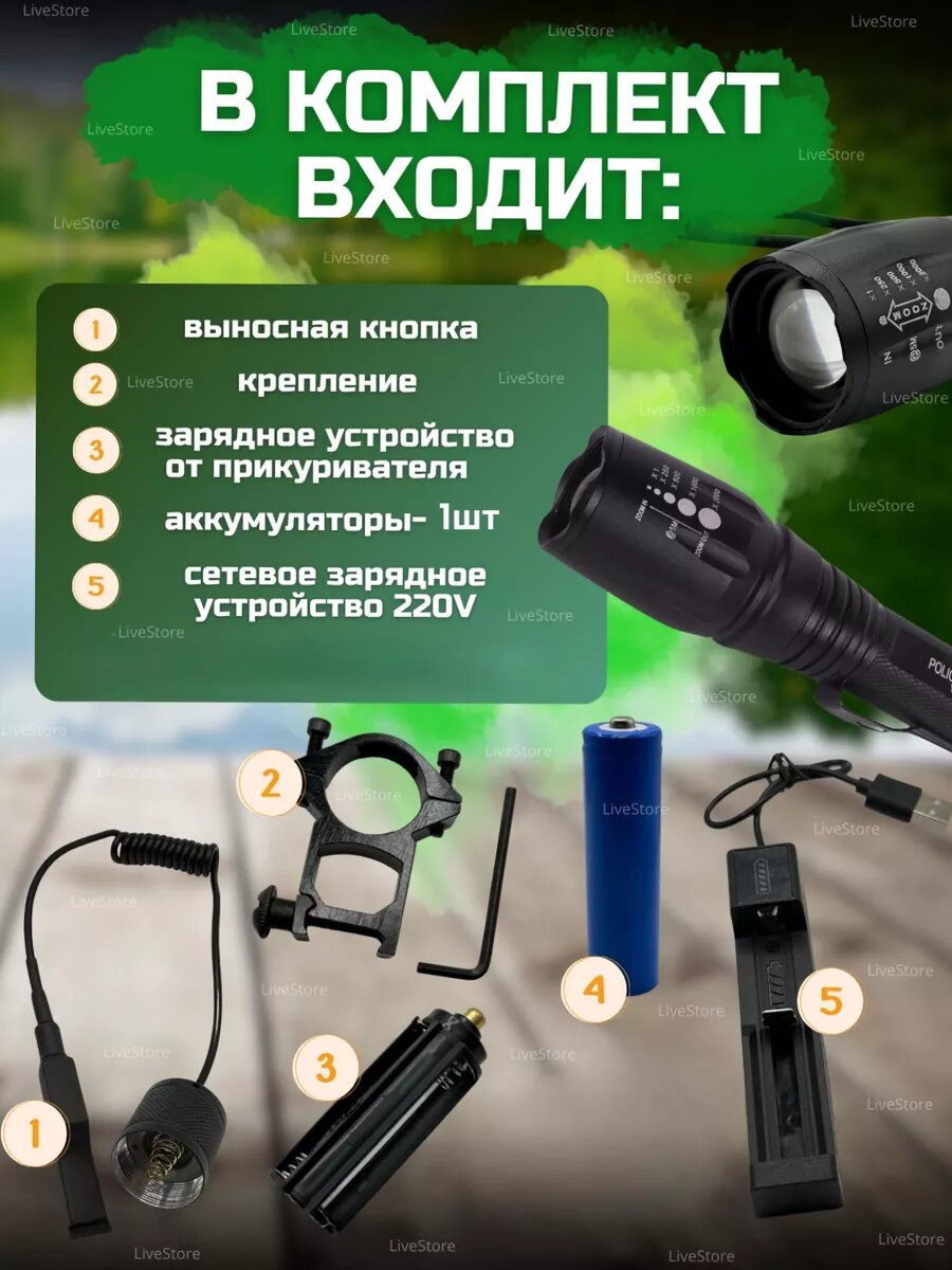 10 цен на Подствольный тактический фонарь LiveStore с аккумулятором и зумом