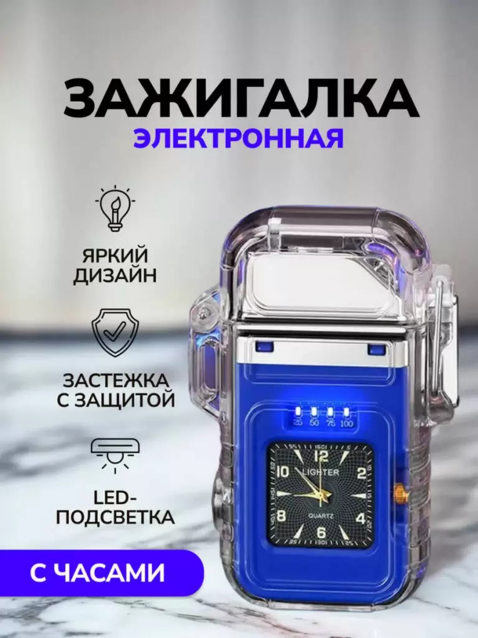 Отзывы на Зажигалка электронная mgh-z731, пьезо, с часами и USB-зарядкой, дальностью освещения 20 метров, синяя