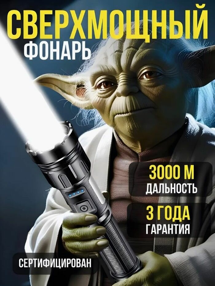 Фонарь ручной аккумуляторный / Сверхмощный лазерный светодиод /Встроенный пауэрбанк информация: