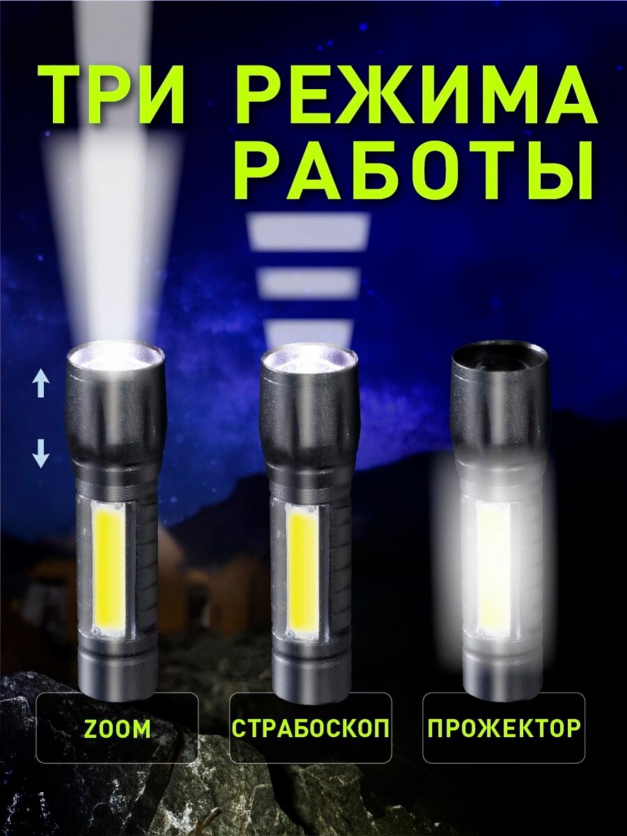 10 цен на Фонарик аккумуляторный, компактный, 3 режима
