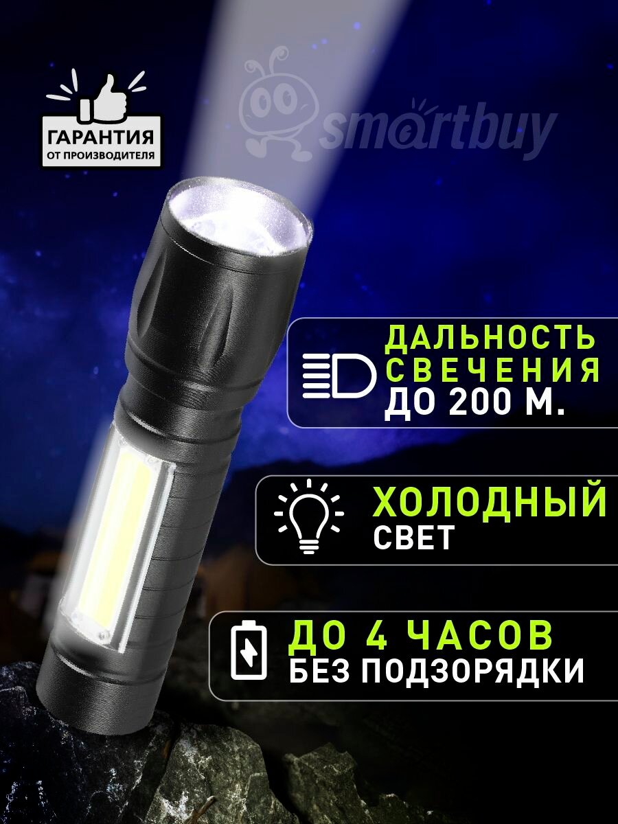 Фонарик аккумуляторный, компактный, 3 режима информация: