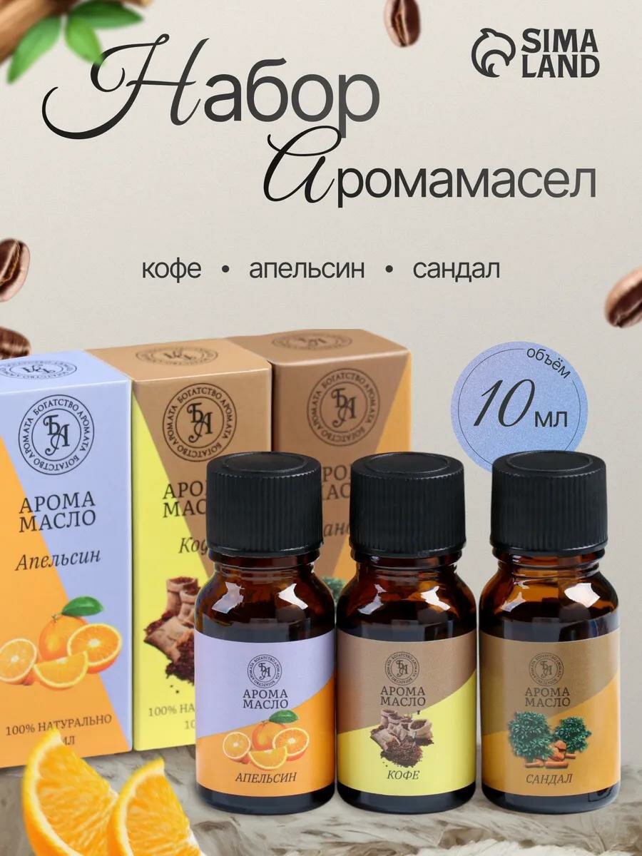 10 цен на Набор эфирных масел "Апельсин, Кофе, Сандал", 10 мл, Богатство Аромата