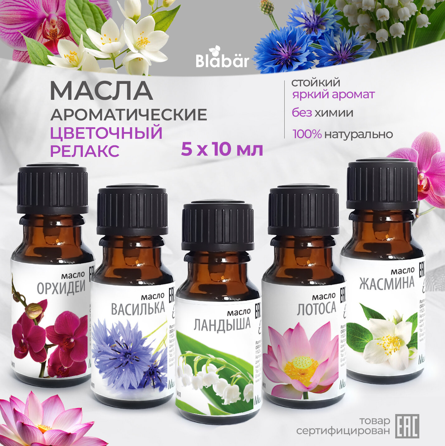 10 цен на Набор ароматических масел Blabar василек , жасмин , ландыш , лотос , орхидея 10 мл, 5 шт