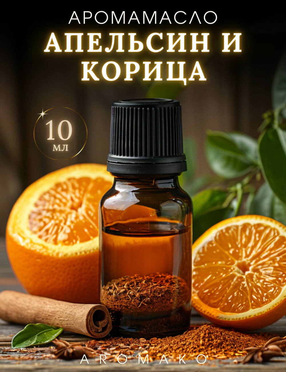 10 цен на Ароматическое масло Апельсин и корица AROMAKO 10 мл, для увлажнителя воздуха, диффузора, ароматизация дома, офиса