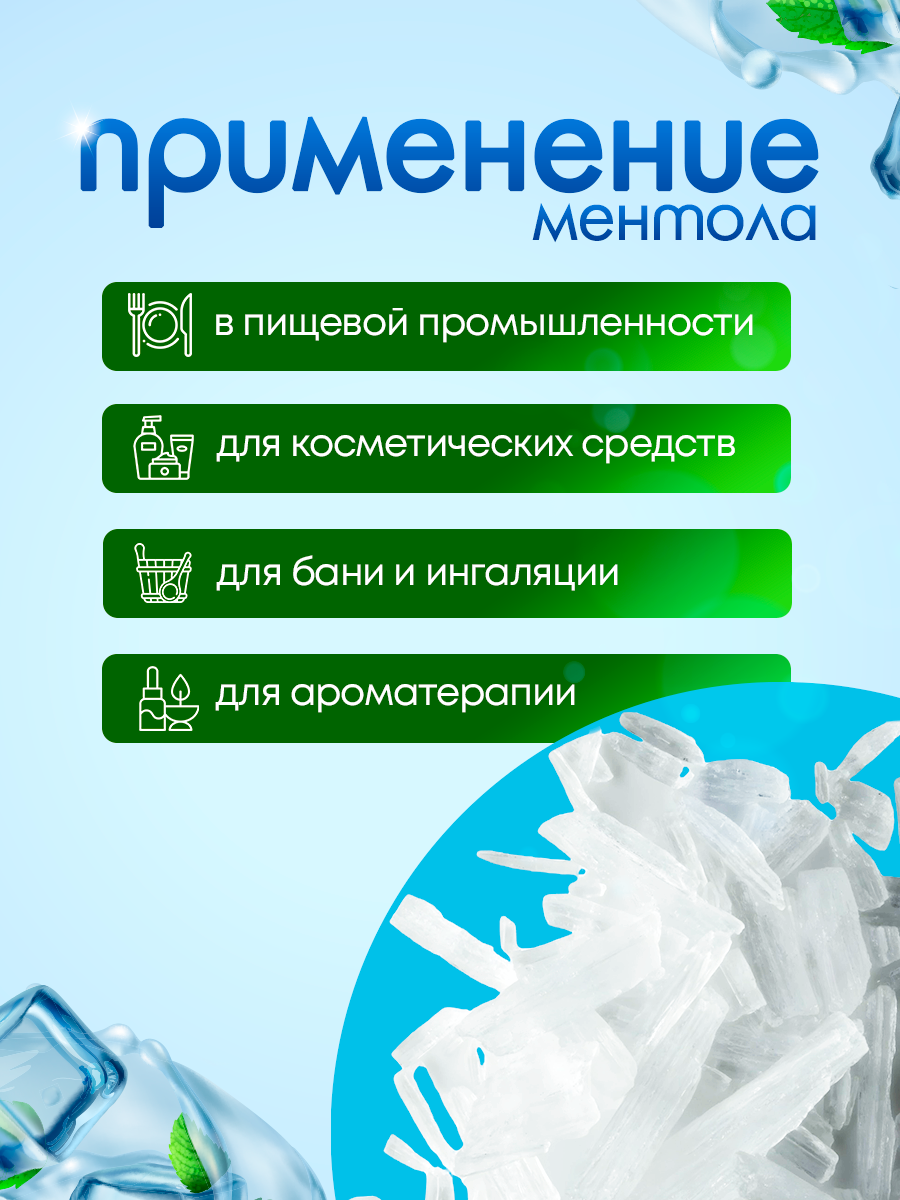 Ментол кристаллический пищевой для бани, ингаляций, вкусовая добавка 25г информация: