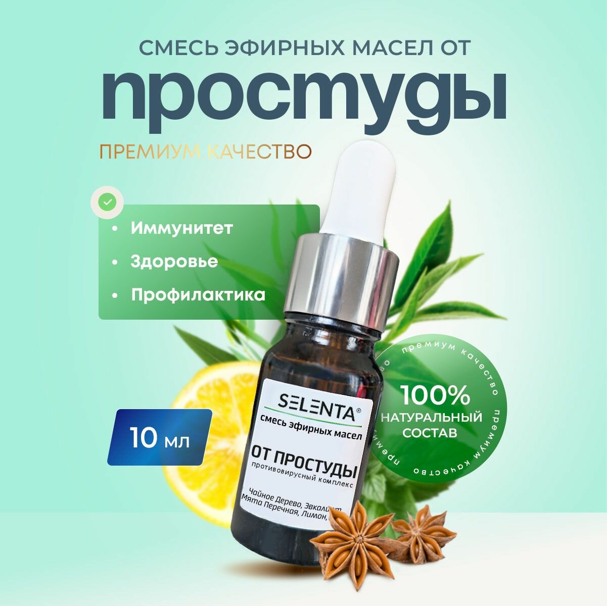 10 цен на Смесь 100% эфирных масел "От простуды" / повышает иммунитет, облегчает симптомы / 10мл.