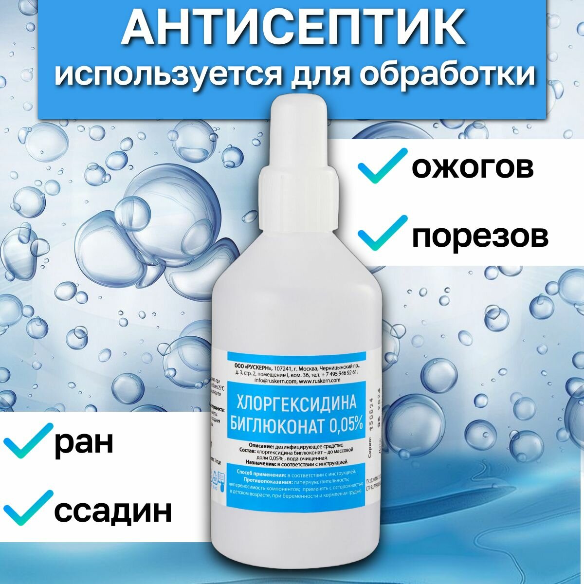 Хлоргексидин 0,05%, 100мл, 40 шт. Антисептик и дезинфицирующее средства для рук и инструментов. информация:
