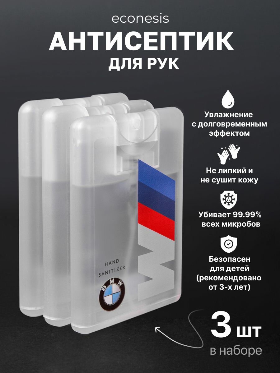 Антисептик санитайзер BMW спрей для рук карманный 3 шт по 20 мл информация: