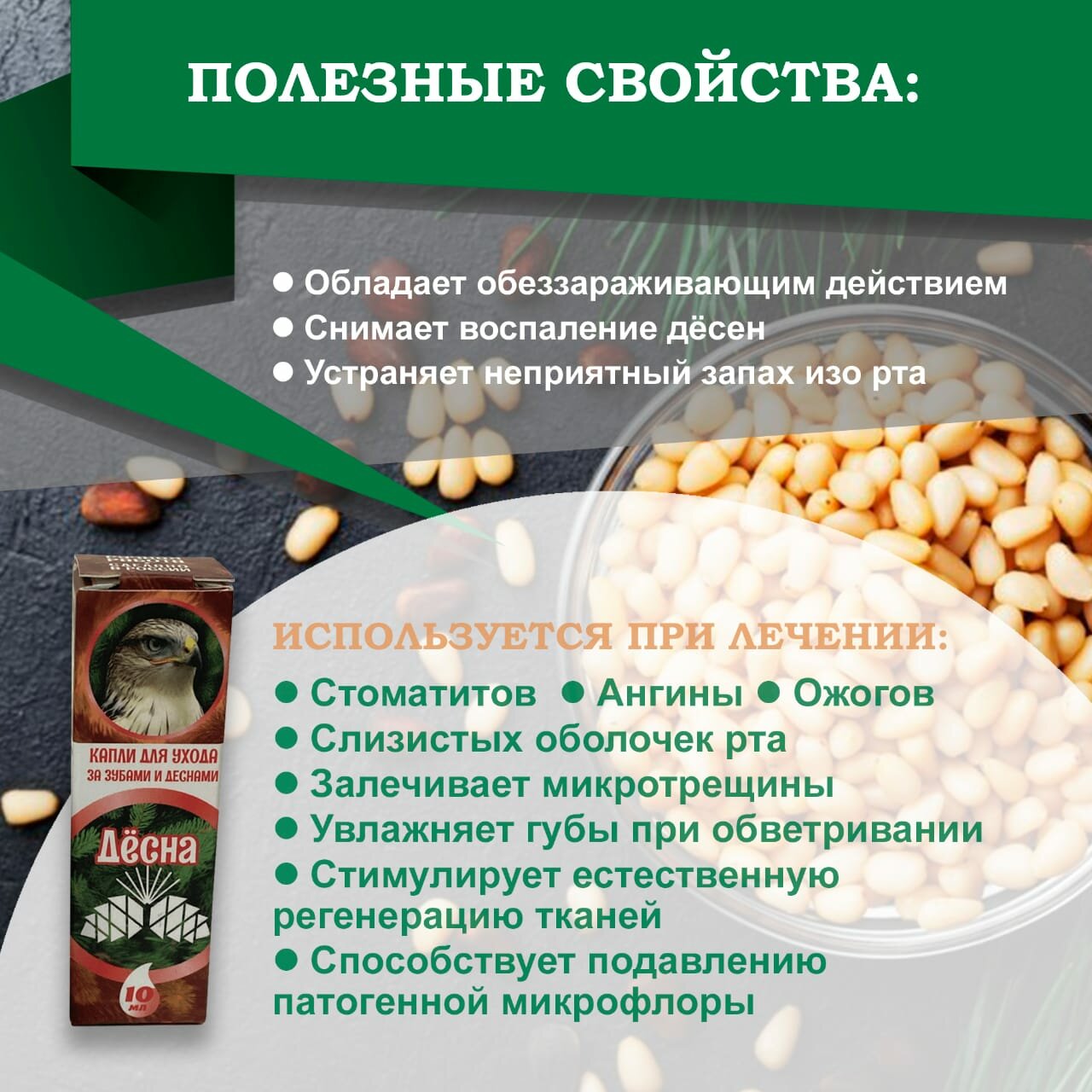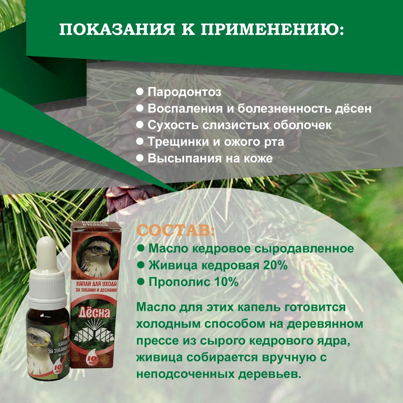 10 цен на Капли кедровые для десен "Десна" с живицей 20% и прополисом, 10 мл. Родовые поместья семьи Камиля Кедр