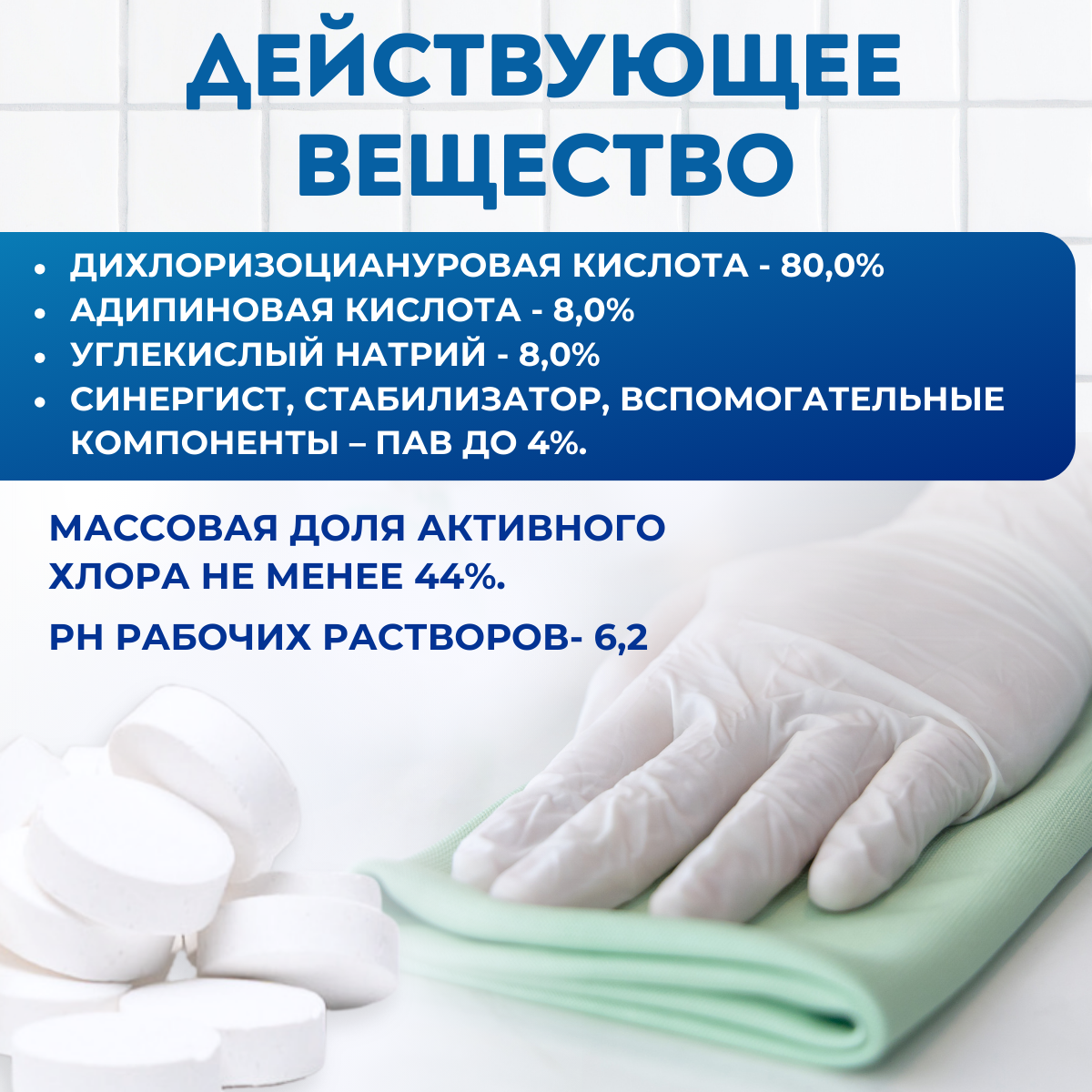Ди-хлор-экстра 60 таблеток, хлорные таблетки для дезинфекции и уборки информация: