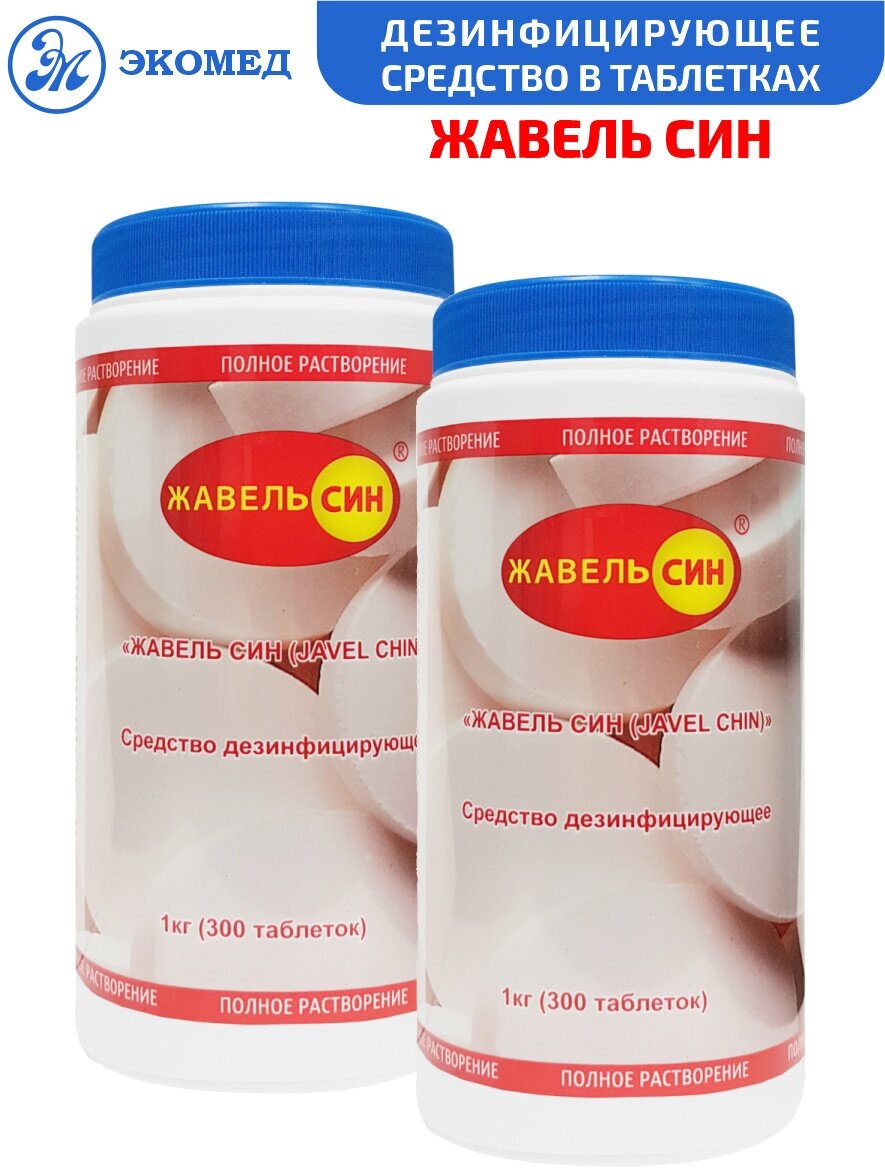 Комплект Дезинфицирующее средство Жавель Син таблетки 300 штук х 2 шт. информация: