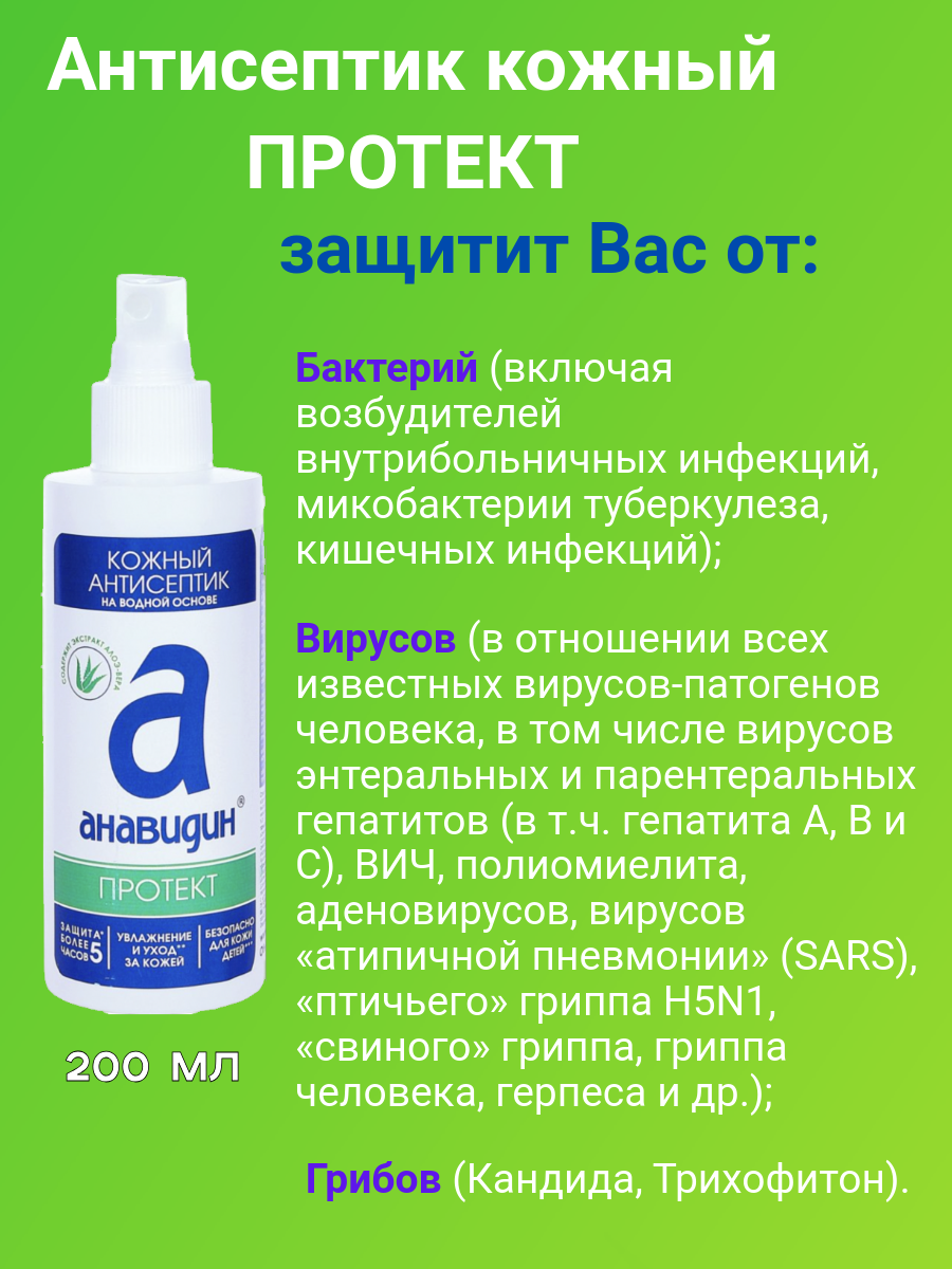 Анавидин-Протект, Антисептик кожный с алоэ-вера, Анавидин-Протект, спрей, 200 мл, водная основа информация: