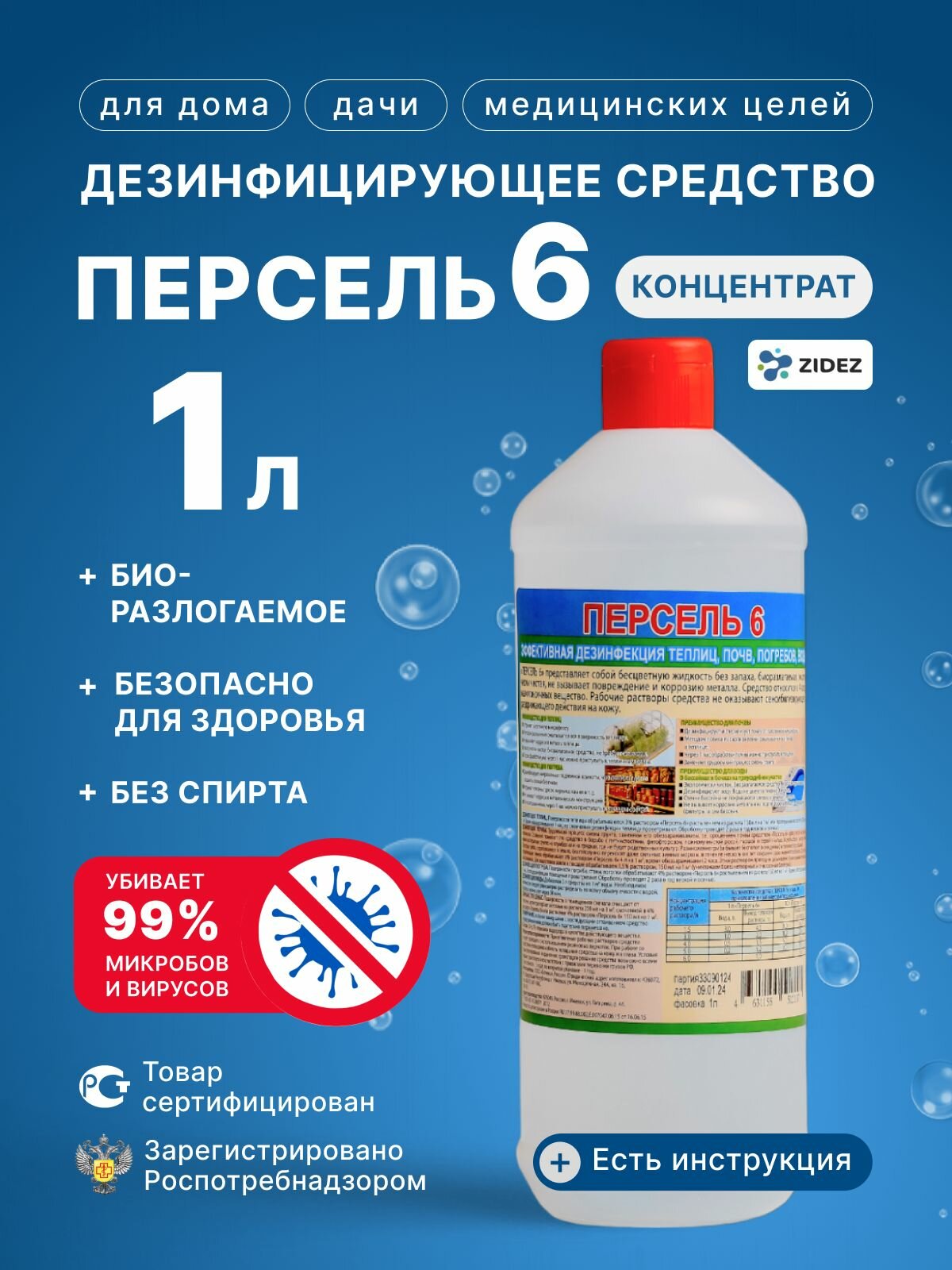 Отзывы на Дезинфицирующее средство "Персель 6", 1 л, 6% перекись водорода, картонная коробка