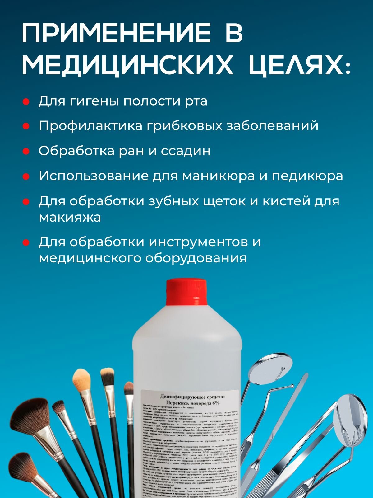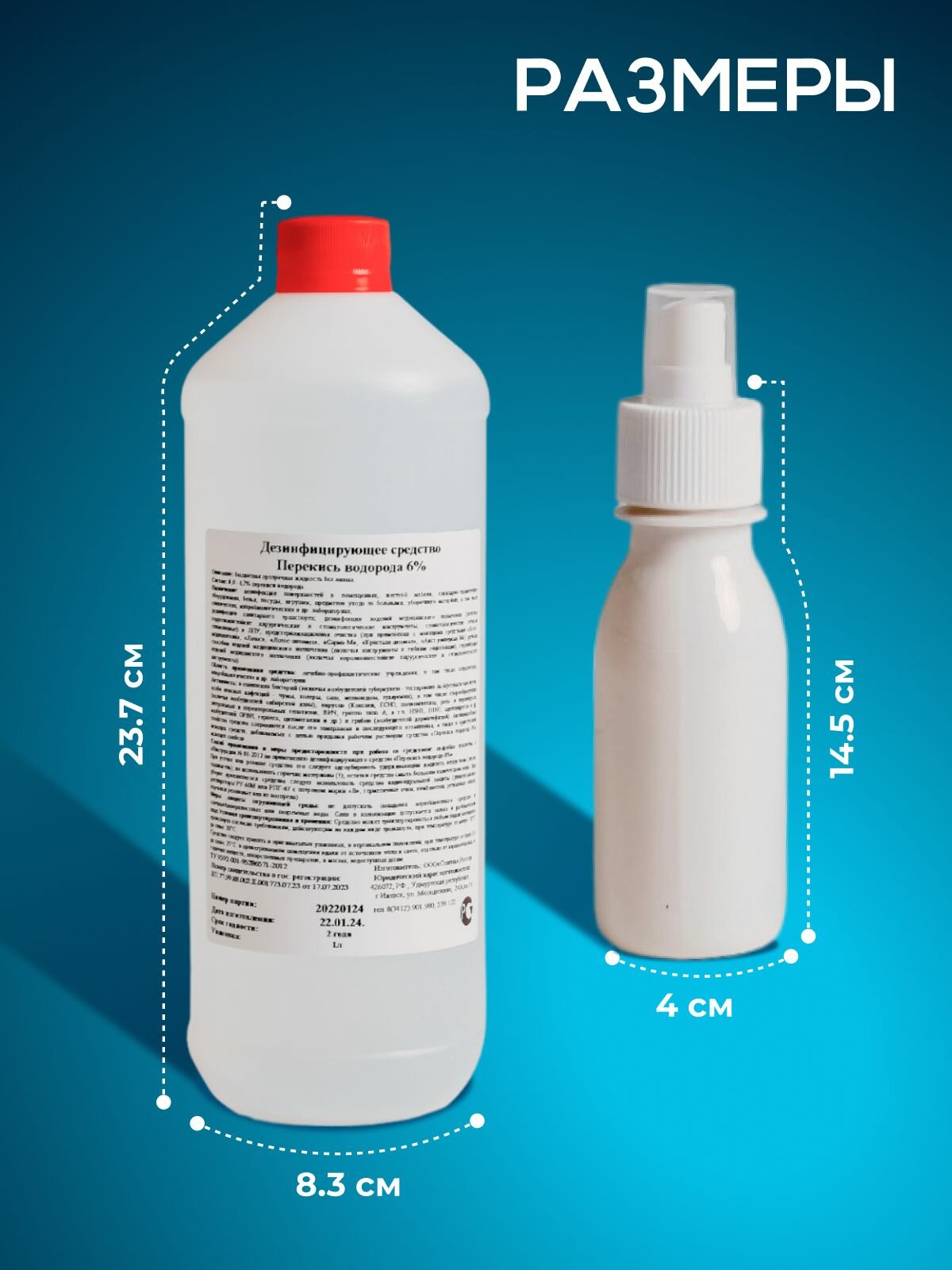 Перекись водорода 6% 4 шт. по 1 л + флакон 100 мл с распылителем. Дезинфицирующее средство для инструментов и бассейнов информация: