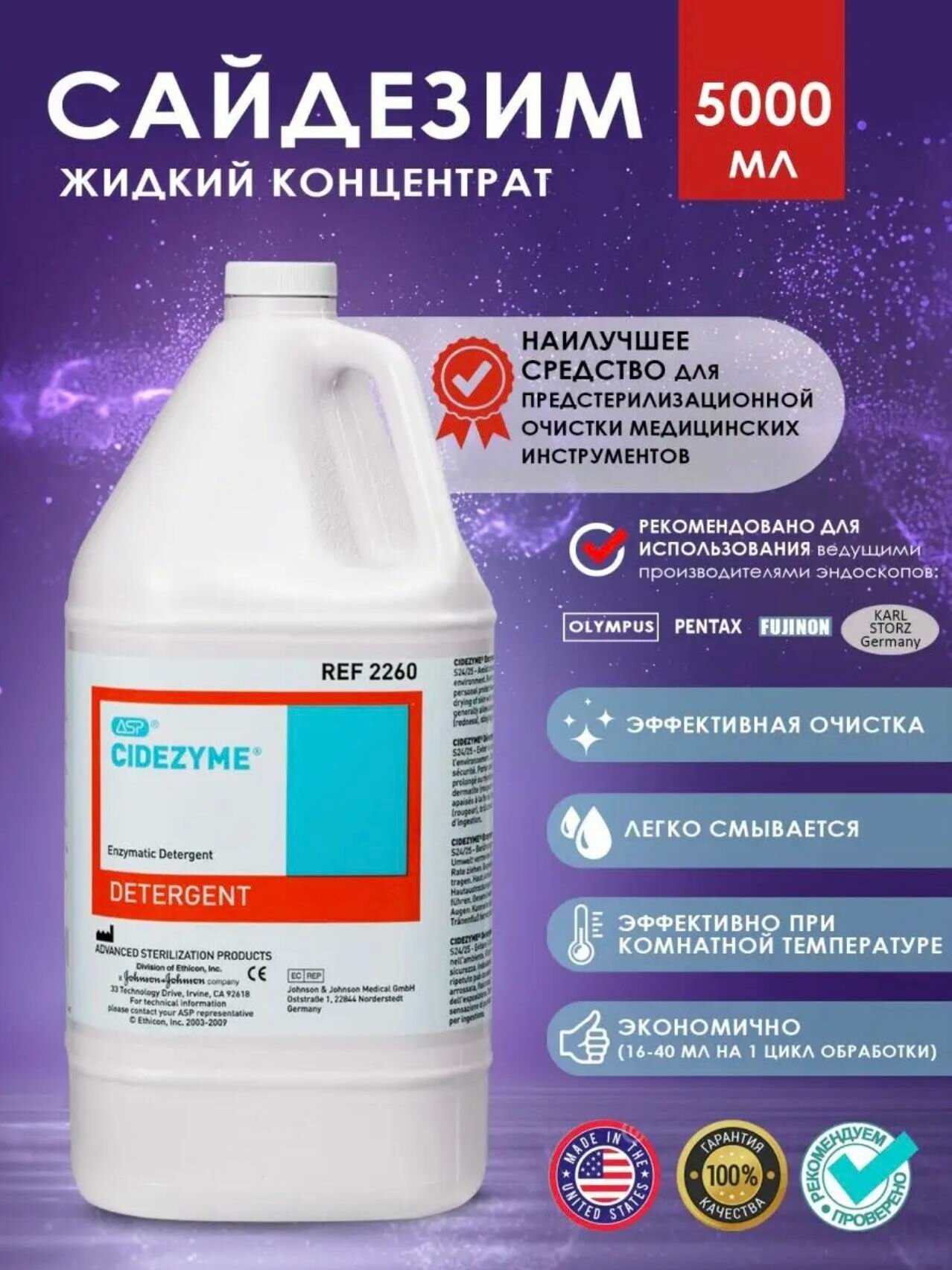 Дезинфицирующее средство жидкий концентрат Сайдезим для поверхностей и инструментов, 5л информация: