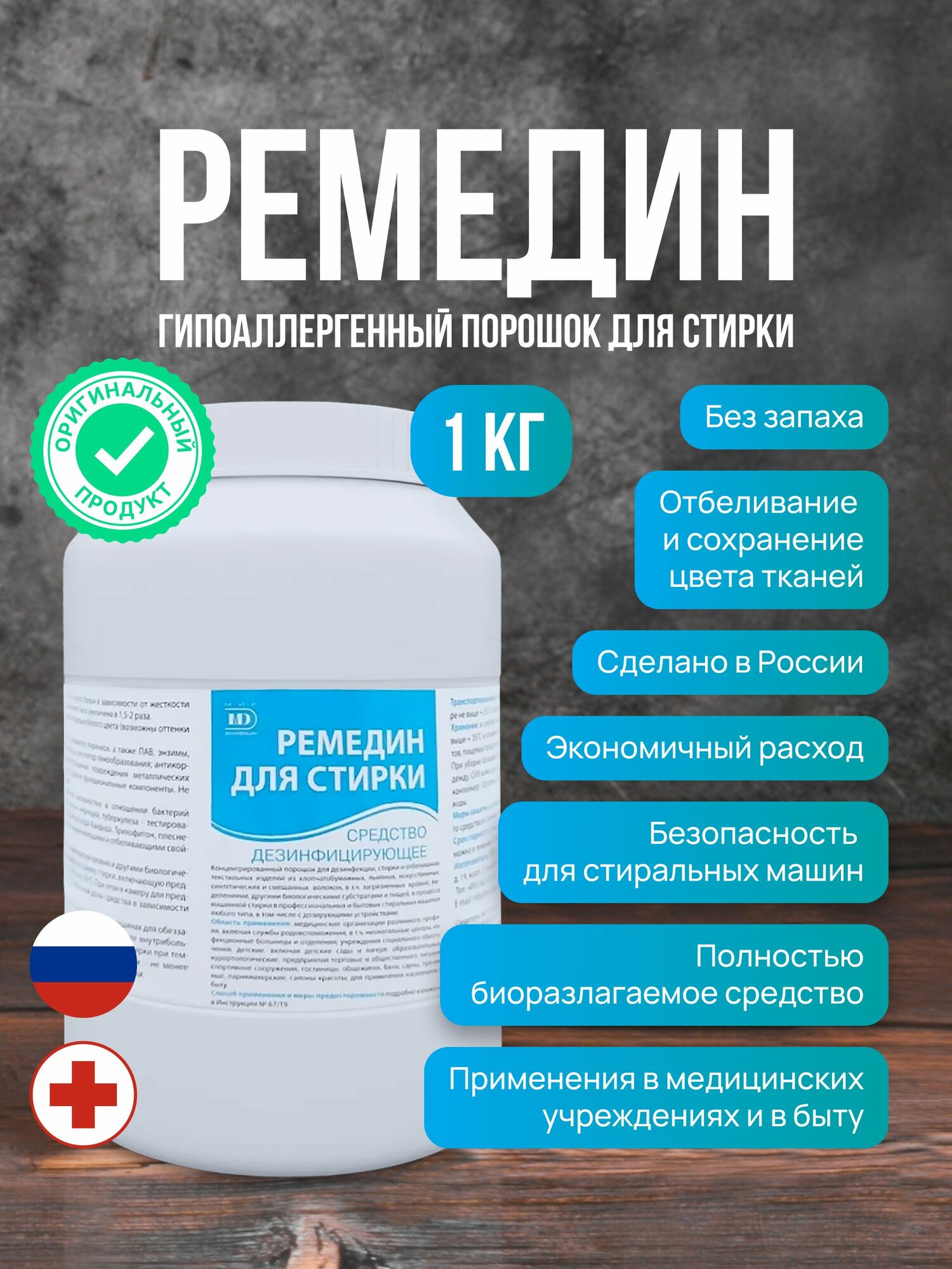 Стиральный порошок дезинфицирующий Ремедин для стирки, 1 кг/ дезинфицирующее средство информация: