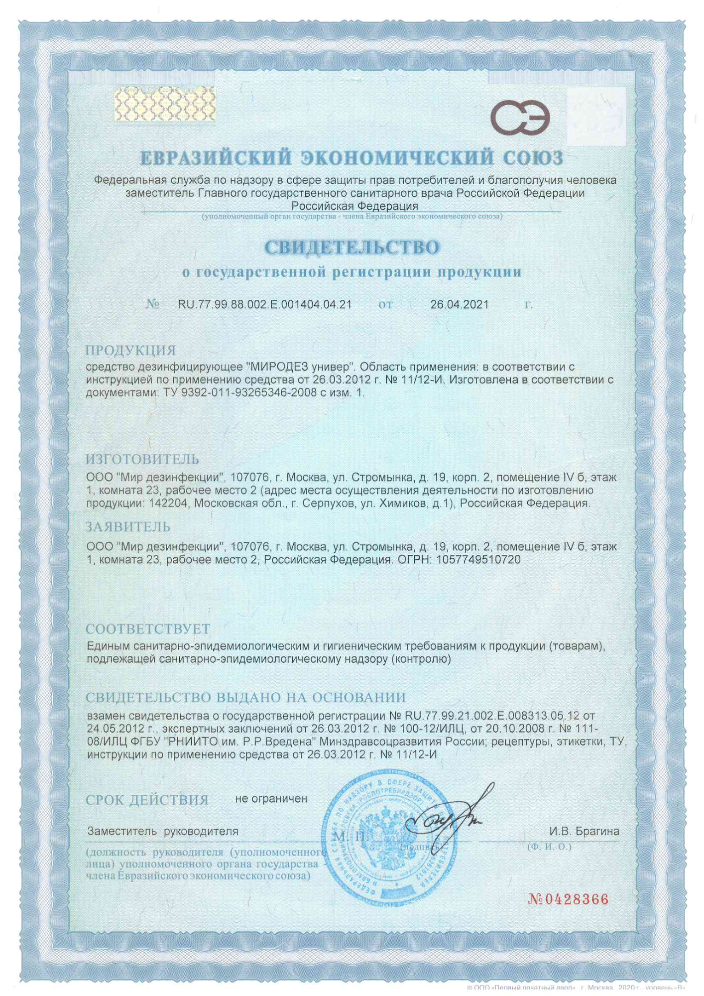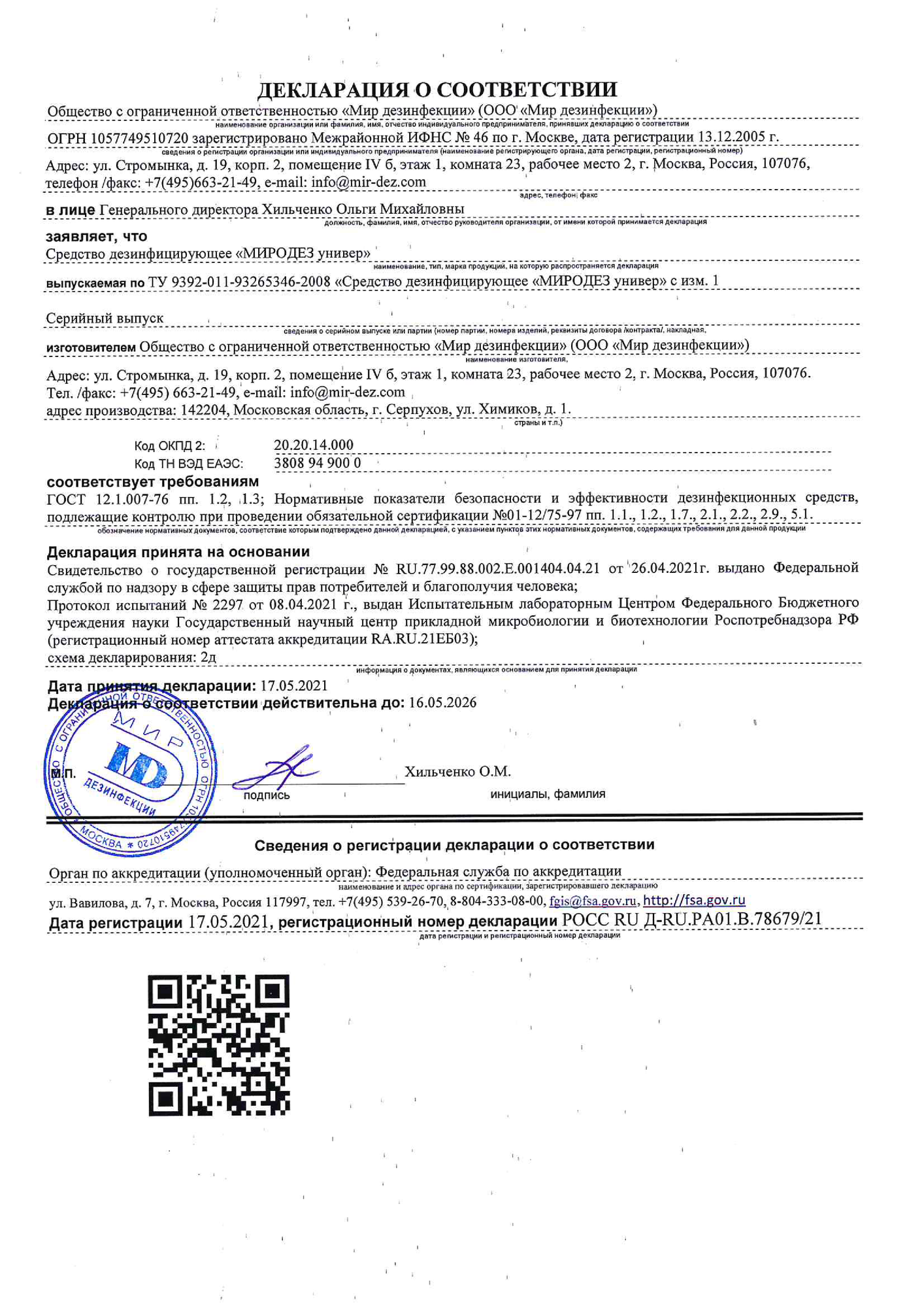 Дезинфицирующее средство Миродез универ 1 литр с моющим эффектом информация: