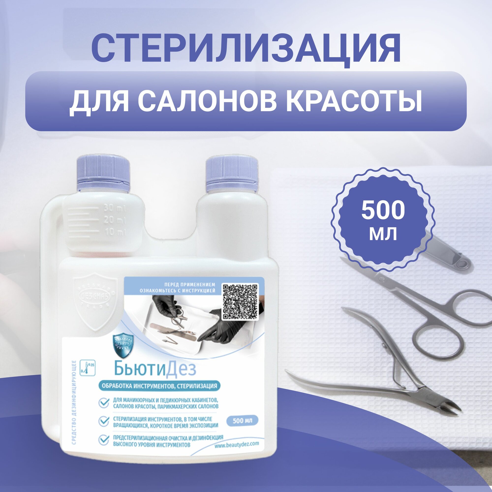 Средство для стерилизации, для очистки инструментов маникюрного, парикмахерского, медицинского от налета и нагара 0,5 л информация: