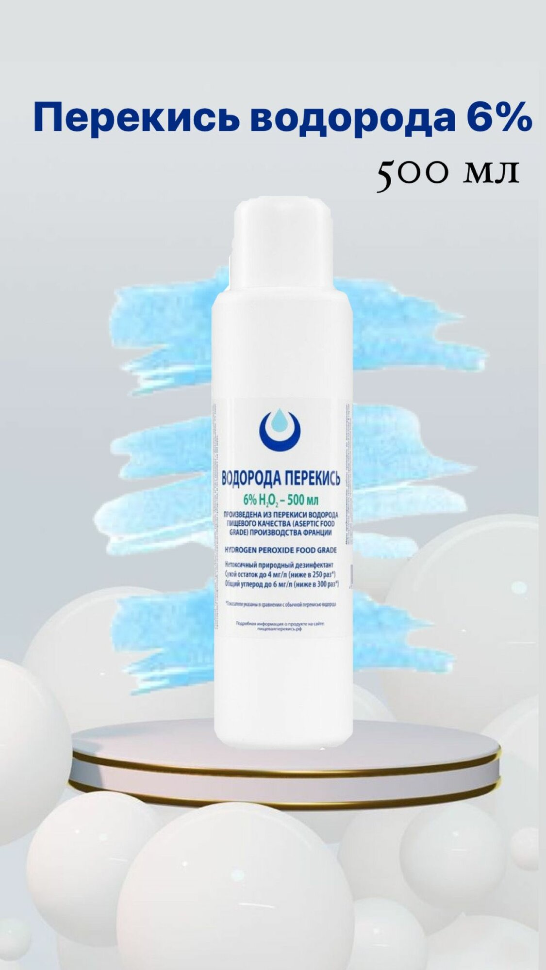 Перекись водорода 6% Brilliant ORGANIC без бензоата натрия, 500мл, средство дезинфицирующее для обработки поверхностей информация: