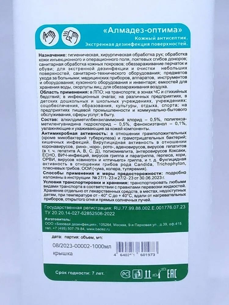 Алмадез-оптима кожный и дезинфекция поверхностей 5000 мл информация:
