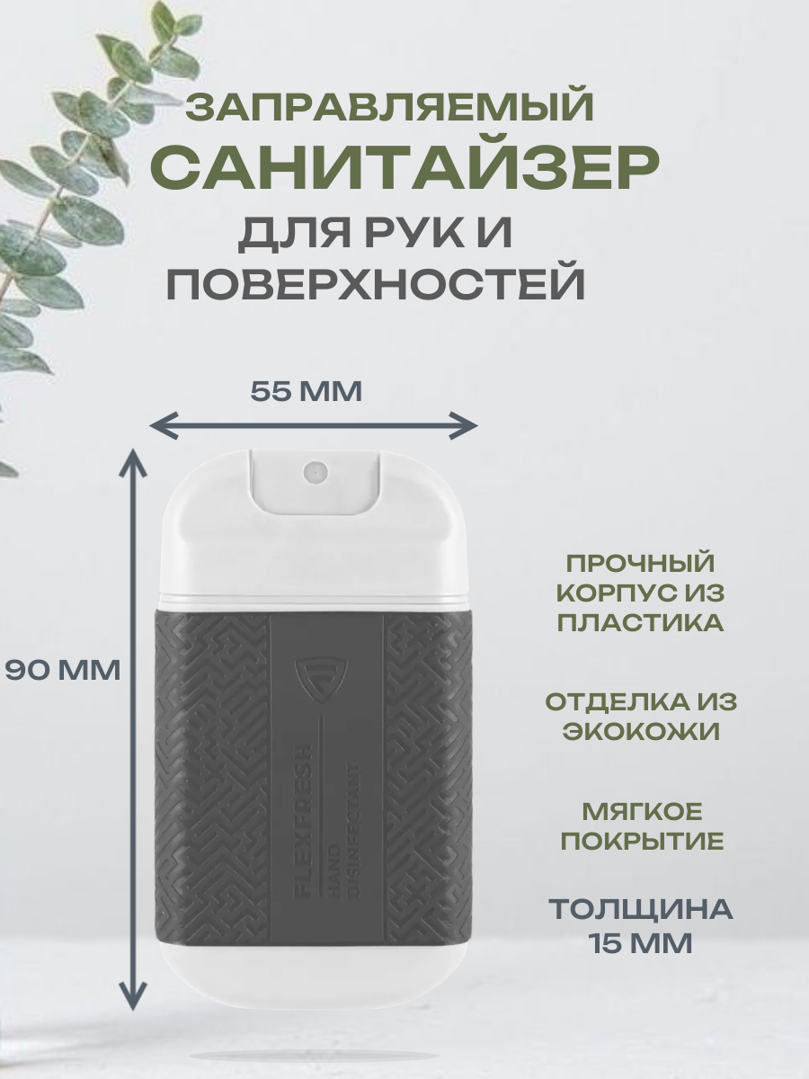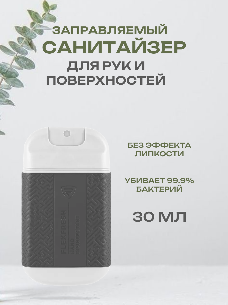 FlexFresh, Антисептик для рук и поверхностей в заправляемом флаконе, Серый, 30 мл информация: