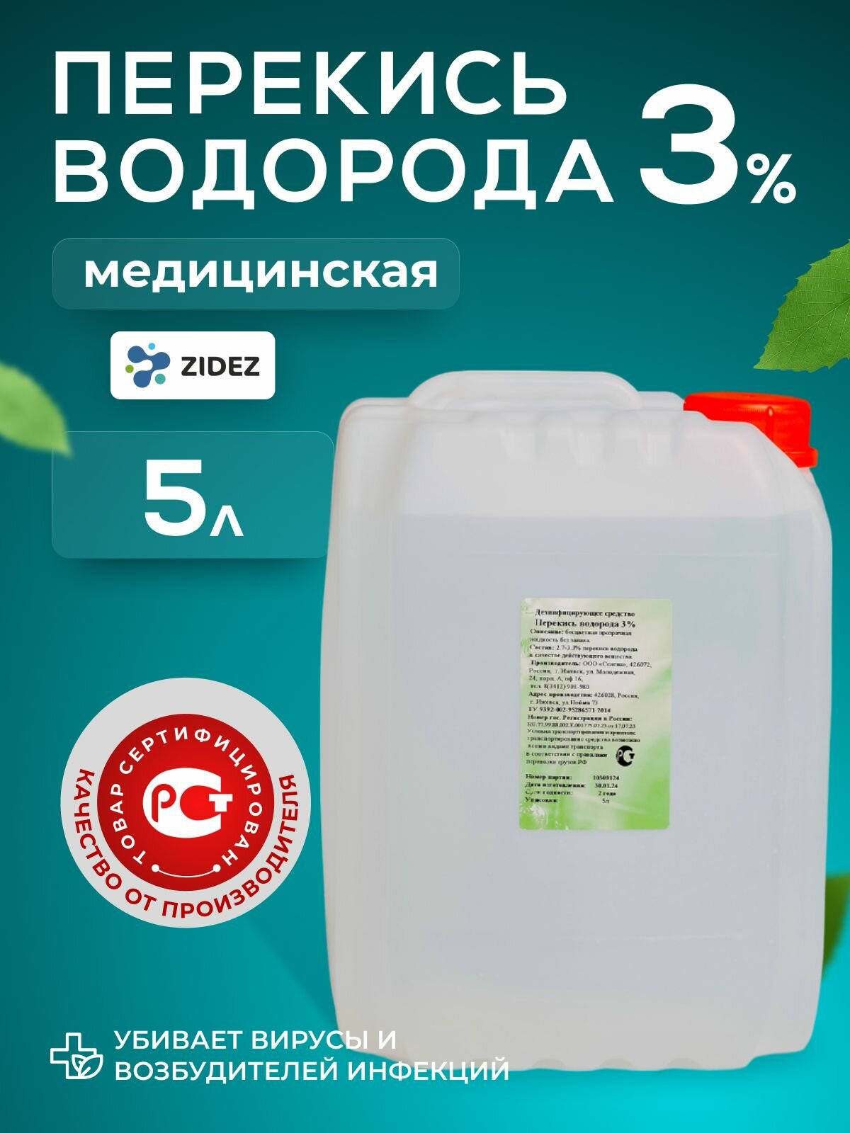 Перекись водорода 3% 5 л медицинская Дезинфицирующее средство для поверхностей . Средство для обработки инструментов информация: