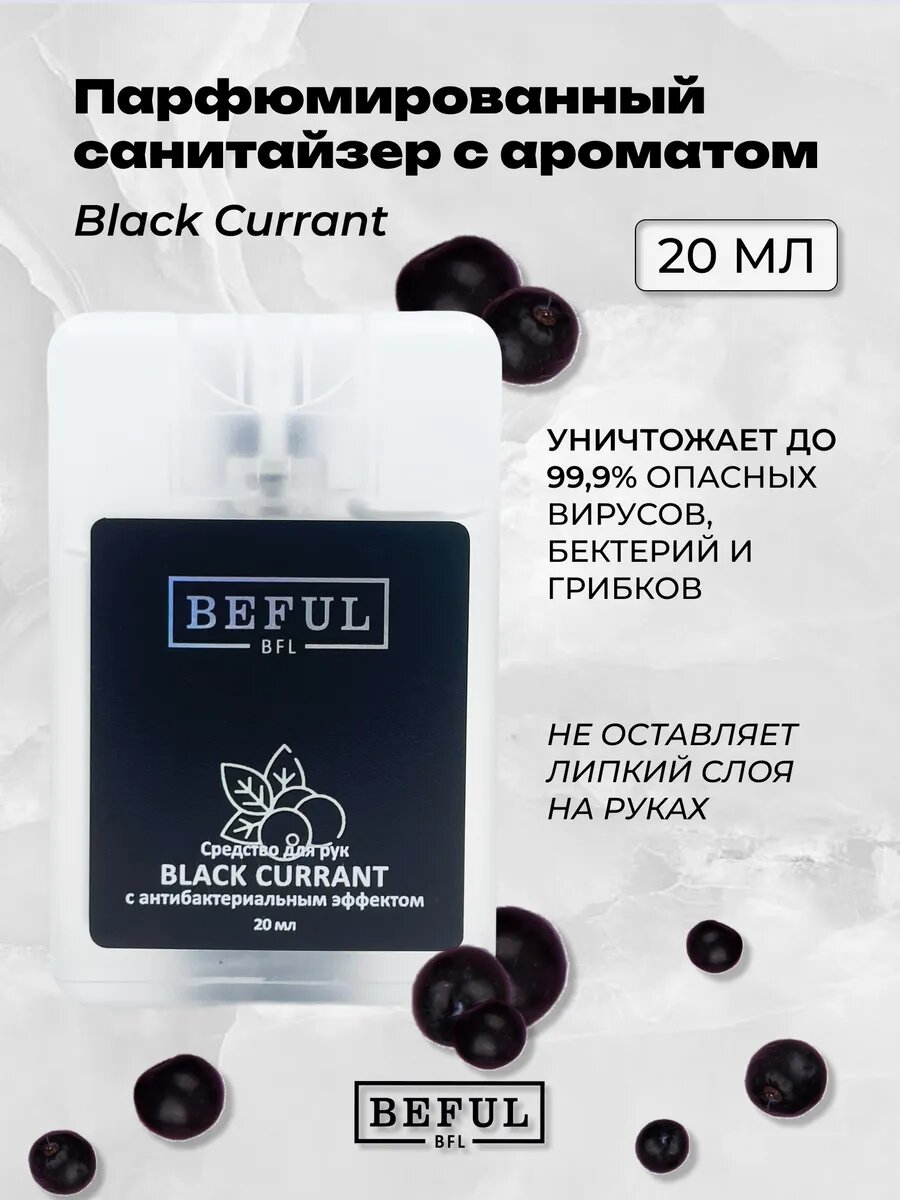 Карманный антисептик для рук BEFUL "BLACK CURRANT" с D пантенолом, 20мл, парфюмированный санитайзер 585 ₽