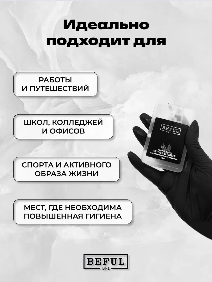 10 цен на Карманный антисептик для рук BEFUL "VETIVER&AMBER" с D пантенолом, 20мл, парфюмированный санитайзер