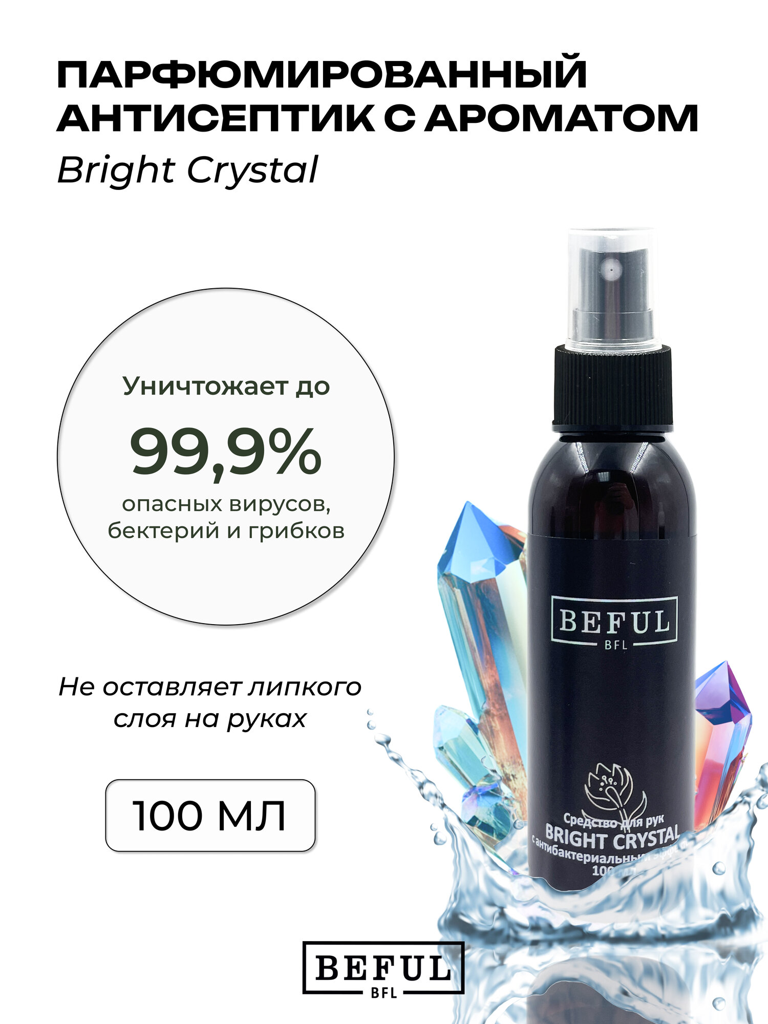 Отзывы на Антисептик для рук BEFUL "BRIGHT CRYSTAL", парфюмированный, с D пантенолом, 100мл