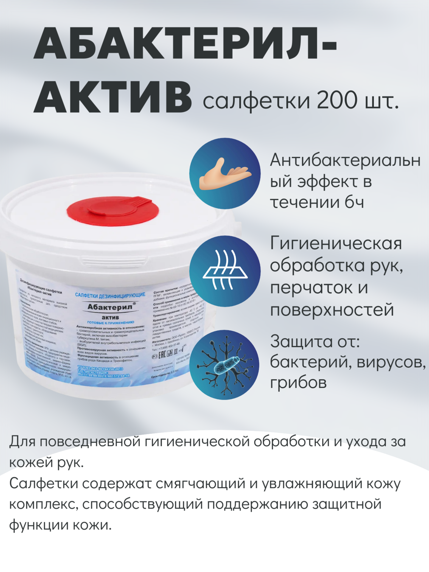 10 цен на 2 шт. Салфетки Абактерил-актив влажные дезинфицирующие 200 шт./уп (банка)