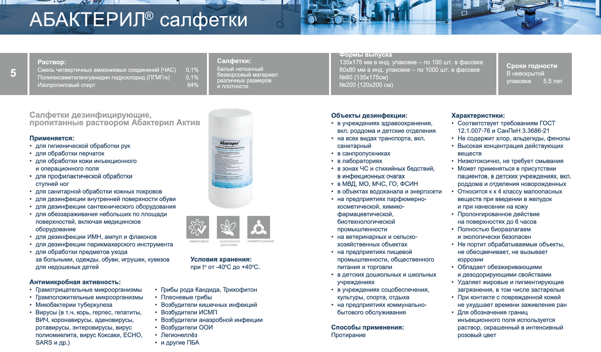 5 шт. Салфетки Абактерил-актив влажные дезинфицирующие 200 шт./уп (банка) информация: