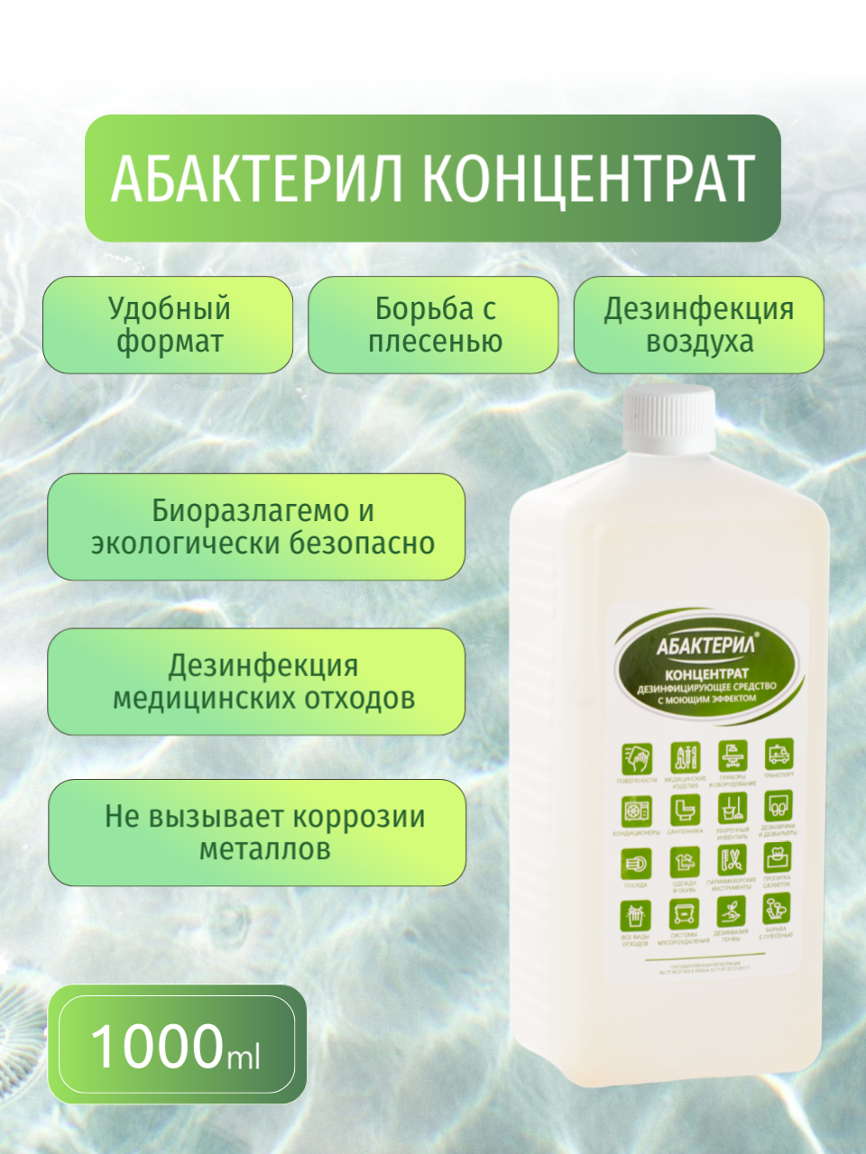 10 цен на 2 шт. Абактерил концентрат 1л дезинфицирующее средство с вирулицидной активностью ГОСТ 12.1.007-76